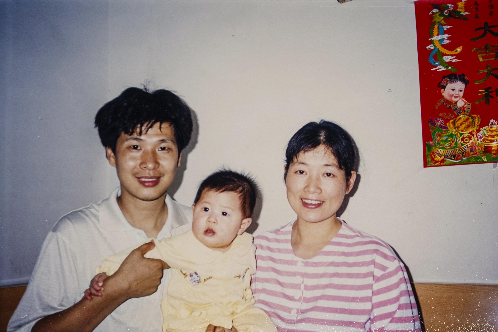 (Ảnh trên) Một bức ảnh lúc nhỏ của Trần Pháp Độ cùng cha mẹ cô, cha là Trần Trường Dũng (trái) và mẹ là Đới Chí Trân khi còn ở Trung Quốc. Cha cô, Trần Trường Dũng, là một học viên Pháp Luân Công bị bắt vì đức tin của ông và sau đó đã qua đời do sự đàn áp của chính quyền Trung Quốc. (Ảnh dưới) Ảnh chụp Trần Pháp Độ cùng mẹ là Đới Chí Trân. (Ảnh: Samira Bouaou/The Epoch Times)