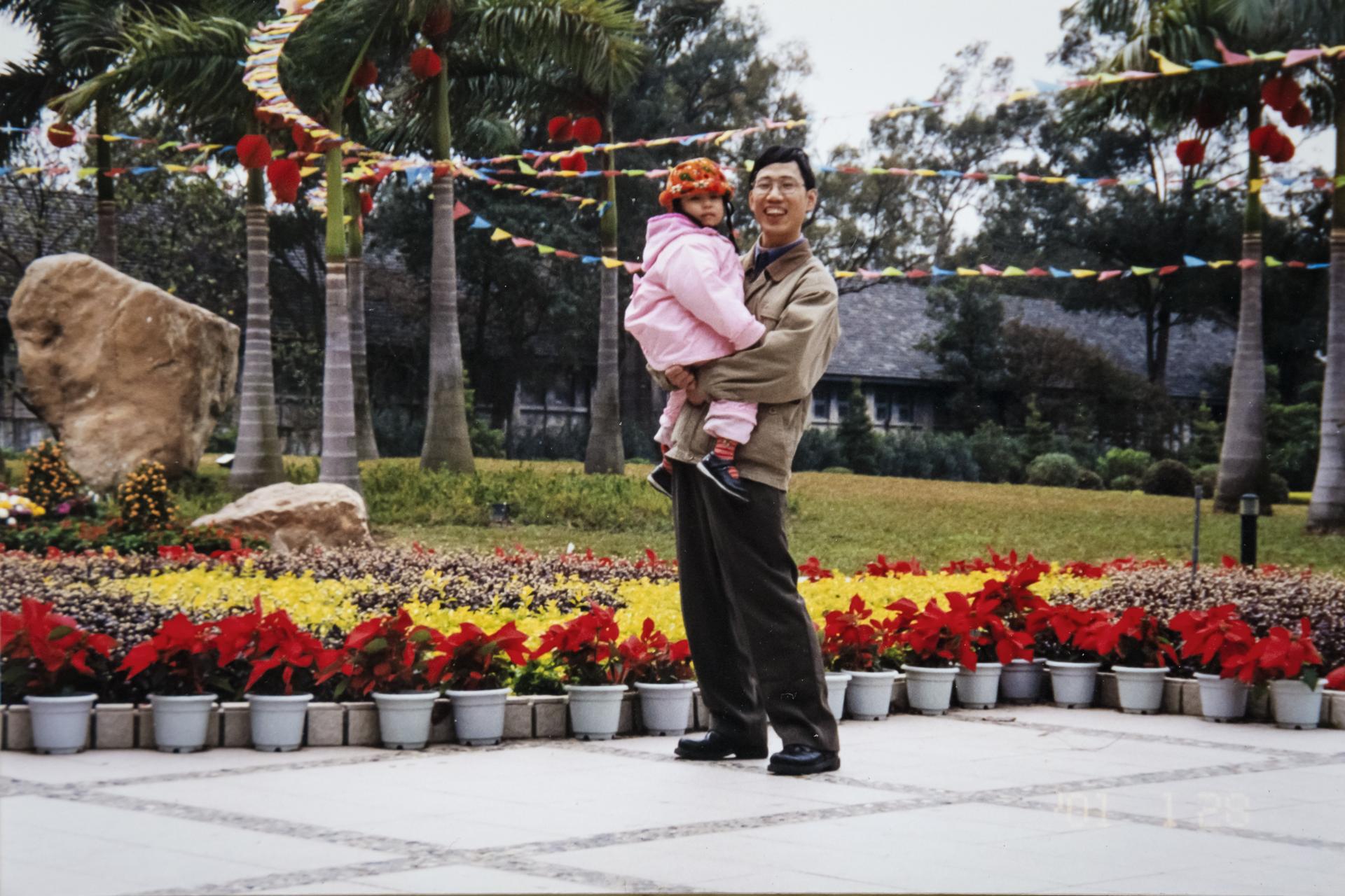 (Ảnh trên) Nghệ sĩ múa Shen Yun – Nhiêu Đức Như (Ellie Rao) cầm ảnh bố mẹ cô tại Middletown, New York, vào ngày 03/12/2024. Bố cô, Nhiêu Trác Viên, đã bị bắt tại Trung Quốc khi cô mới bốn tuổi vì đức tin của ông vào Pháp Luân Công. Ông đã qua đời trong một cuộc bức hại vài tuần sau đó. (Ảnh dưới) Một bức ảnh của Nhiêu Đức Như và bố cô Nhiêu Trác Viên khi cô còn nhỏ. (Ảnh: Samira Bouaou/The Epoch Times)