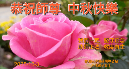 Đệ tử Đại Pháp ở điểm luyện công Tsim Sha Tsui, Hồng Kông kính chúc Sư tôn Trung Thu vui vẻ!