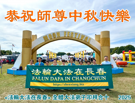 Toàn thể đệ tử Đại Pháp ở tổ hạng mục “Pháp Luân Đại Pháp tại Trường Xuân” kính chúc Sư tôn từ bi vĩ đại Trung Thu vui vẻ! Pháp Luân Đại Pháp hảo! Chân Thiện Nhẫn hảo!