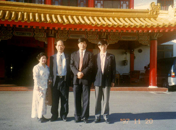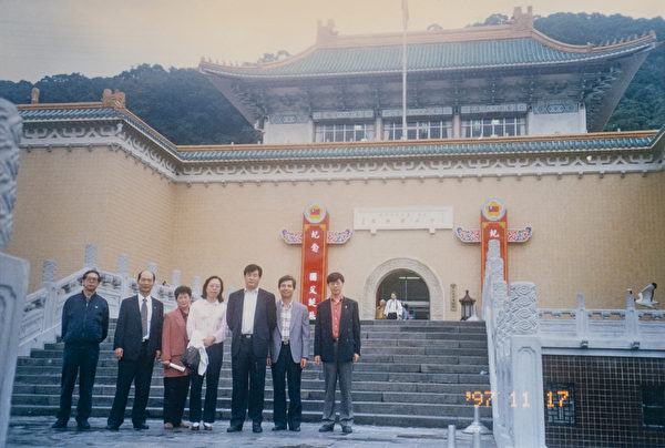 Ngày 17 tháng 11 năm 1997, Sư phụ Lý Hồng Chí – người sáng lập Pháp Luân Công (thứ ba từ phải sang) đã chụp ảnh lưu niệm cùng một vài học viên đi cùng sau khi tham quan Bảo tàng Cố Cung. (NXB Bác Đại cung cấp)