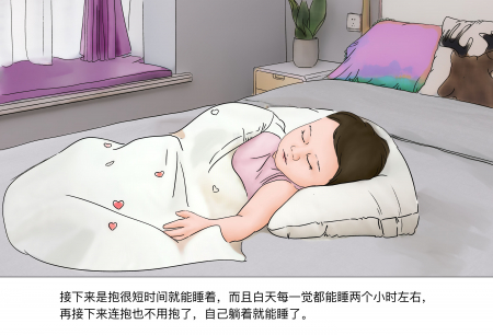 Tiếp sau đó, chỉ cần ẵm cháu một lúc là cháu ngủ, hơn nữa ban ngày cháu ngủ cũng được khoảng hai tiếng, tiếp sau đó thì chẳng cần ẵm nữa, đặt nằm xuống là có thể tự ngủ ngon lành.