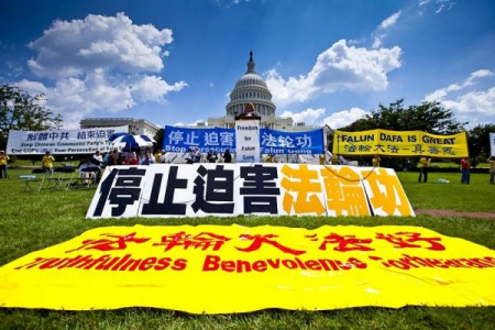 Các học viên Pháp Luân Công từ khắp nơi trên thế giới cùng những nhân sĩ chính nghĩa, nghị sĩ Quốc hội và các tổ chức phi chính phủ đã tổ chức cuộc mít-tinh lớn “Phản đối cuộc bức hại 20/7” trước tòa nhà Quốc hội Hoa Kỳ vào ngày 22/07/2010. (Ảnh: Mark Zou/The Epoch Times)