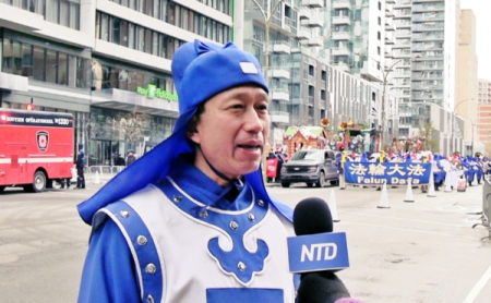 Thành viên Đoàn Nhạc Thiên Quốc, học viên Pháp Luân Công – anh Lưu Thắng, đã tham gia những cuộc diễu hành Giáng sinh như thế này không dưới 10 lần. Anh cho biết, trong văn hóa truyền thống Trung Hoa, âm nhạc hay có tác dụng tịnh hóa thân tâm. Đoàn nhạc Thiên Quốc muốn mang đến cho người dân Quebec thứ âm nhạc ích lợi thân tâm.