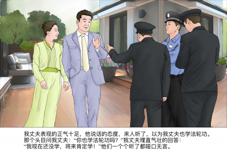Chồng tôi biểu hiện mười phần chính khí, cách anh ấy nói chuyện khiến những người này nghĩ rằng anh ấy cũng tập Pháp Luân Công.
