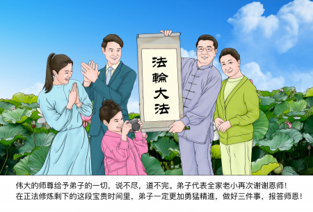 Trong đoạn thời gian quý báu còn lại của tu luyện Chính Pháp, đệ tử nhất định sẽ dũng mãnh tinh tấn hơn nữa, làm tốt ba việc, báo đáp Sư ân!