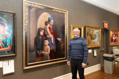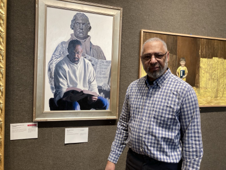 Ngày 22/01/2026, kiến ​​trúc sư tư vấn ông Bryan Winter đến từ New York đã đến tham quan triển lãm các tác phẩm từ Cuộc thi vẽ tranh sơn dầu của NTD lần thứ 7. (Ảnh: Thi Bình/The Epoch Times)