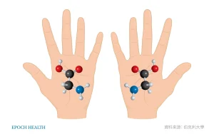 Các phân tử trong thế giới sinh vật giống như tay trái và tay phải của con người, chúng có vẻ giống nhau, nhưng cấu trúc ba chiều lại không thể trùng hợp. (Ảnh: The Epoch Times)