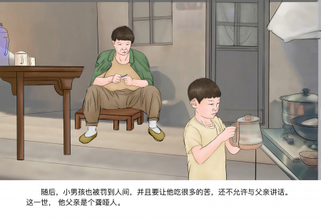Về sau, cậu bé ấy cũng bị đày xuống nhân gian, phải chịu rất nhiều khổ nạn, hơn nữa còn không thể nói chuyện với cha mình. Ở kiếp này, cha của cậu bé là một người vừa câm vừa điếc.