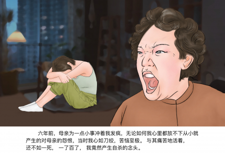 Sáu năm trước, vì một chuyện nhỏ mà mẹ tôi nổi điên trút giận lên tôi. Dù có thế nào tôi vẫn không thể buông bỏ nỗi oán hận với mẹ đã hình thành trong tâm từ khi còn nhỏ, lúc này tôi cảm thấy đau đớn đến xé tim gan, vô cùng khổ não. Tôi nghĩ rằng sống mà khổ thế này thì thà chết cho xong, chết thì giải quyết hết mọi chuyện, tôi thậm chí nảy lên trong đầu ý định tự sát.