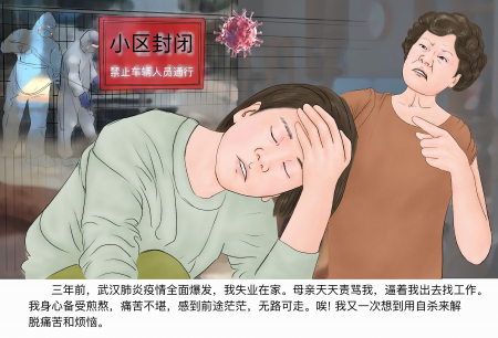 Ba năm trước, dịch viêm phổi Vũ Hán bùng phát trên diện rộng, tôi thất nghiệp ở nhà, mẹ tôi ngày nào cũng mắng chửi tôi, ép tôi ra ngoài tìm việc. Thân tâm tôi bị tra tấn, thống khổ không chịu nổi, cảm thấy tiền đồ mờ mịt, không có lối thoát. Ôi! Một lần nữa tôi lại nghĩ tới việc tự sát để giải thoát bản thân khỏi đau khổ và phiền não.