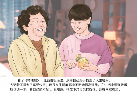 Đọc xong Chuyển Pháp Luân, tôi vui mừng đến phát khóc, quá đỗi sung sướng vì cuối cùng tôi cũng tìm được câu trả lời cho kiếp nhân sinh này. Con người sống không phải để hưởng thụ hạnh phúc, mà là để không ngừng đề cao đạo đức trong khi tiếp xúc với hoàn cảnh xã hội. Khi gặp mâu thuẫn trong cuộc sống thì nên lùi một bước, nhìn lại những thiếu sót của bản thân. Tôi biết rằng mình cần phải buông bỏ oán hận với mẹ, hơn nữa còn phải hiếu kính với mẹ.