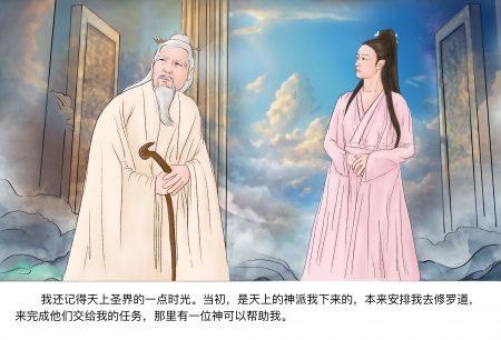 Tôi vẫn còn nhớ một đoạn ký ức về quãng thời gian ở Thiên thượng Thánh giới. Khi ấy, các vị Thần trên trời đã phái tôi xuống nhân gian, vốn dĩ an bài cho tôi đi vào A Tu La đạo, đến để hoàn thành nhiệm vụ mà họ giao phó, nơi đó có một vị Thần có thể giúp đỡ tôi.