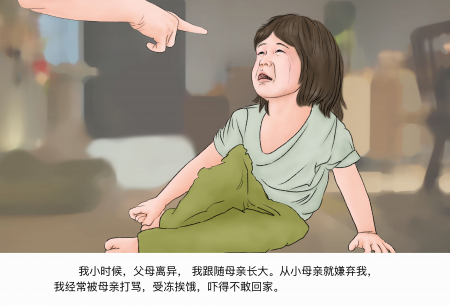Khi tôi còn nhỏ cha mẹ đã ly hôn, tôi lớn lên bên cạnh mẹ. Từ nhỏ, mẹ đã chán ghét tôi. Hằng ngày tôi thường bị mẹ mắng chửi, vừa lạnh vừa đói, sợ hãi đến mức không dám về nhà.