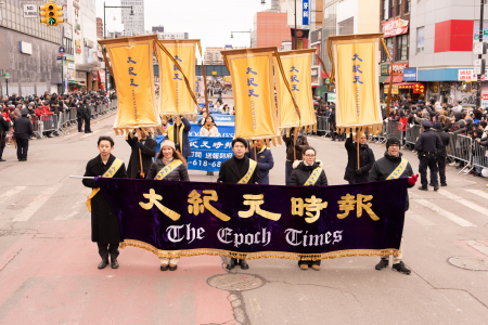 Ngày 21/02/2026, tức mùng 5 Tết Bính Ngọ, Thời báo The Epoch Times và Đài Truyền hình NTDTV đã tham gia cuộc đại diễu hành mừng năm mới của người Hoa được tổ chức thường niên tại Flushing — nơi có cộng đồng người Hoa đông nhất thành phố New York. (Ảnh: Đới Binh/The Epoch Times)