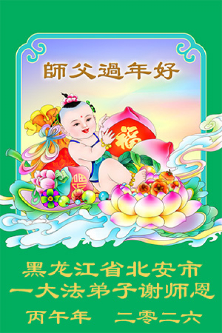 Một đệ tử Đại Pháp ở thành phố Bắc An, Hắc Hà, tỉnh Hắc Long Giang kính chúc Sư phụ vĩ đại năm mới vui vẻ!
