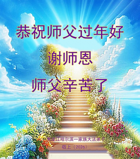 Nhân dịp năm mới Trung Quốc 2026 sắp tới gần, đệ tử xin được chúc tết Sư tôn đang ở bên kia bờ đại dương vì đệ tử và chúng sinh ngày đêm vất vả nhọc lòng! Kính chúc Sư phụ năm mới vui vẻ! Đệ tử có dùng hết thiên ngôn vạn ngữ cũng không thể biểu đạt hết thánh ân từ bi cứu độ của Sư phụ. Đệ tử trong năm tới sẽ cố gắng tinh tấn hơn, tinh tấn hơn nữa trên con đường kim quang đại đạo trợ Sư chính Pháp, làm thật tốt ba việc mà đệ tử Đại Pháp cần làm. Con sẽ “dĩ Pháp vi Sư” đi cho chính con đường tu luyện của bản thân, theo Sư phụ trở về nhà! Kính chúc Sư phụ năm mới vui vẻ! Như ý cát tường!