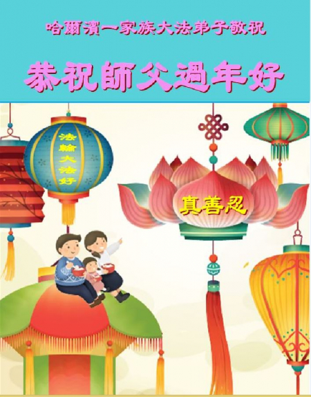Cả nhà đệ tử Đại Pháp ở Cáp Nhĩ Tân, tỉnh Hắc Long Giang cung chúc Sư phụ từ bi vĩ đại năm mới vui vẻ!
