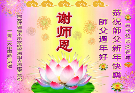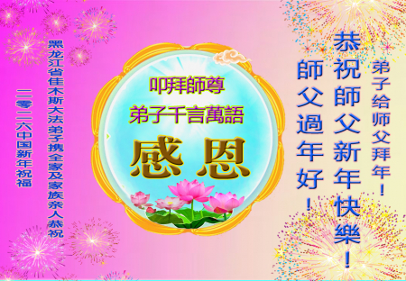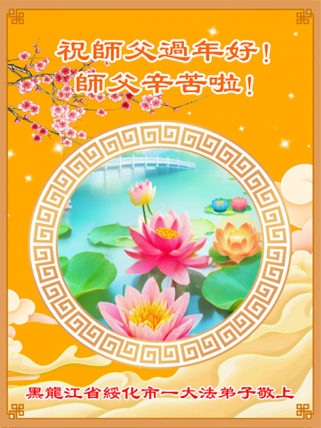 Đệ tử Đại Pháp thành phố Mẫu Đơn Giang, tỉnh Hắc Long Giang kính chúc Sư phụ năm mới vui vẻ!