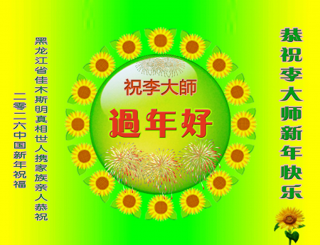 Người nhà đệ tử Đại Pháp cùng người thân trong gia tộc ở Giai Mộc Tư tỉnh Hắc Long Giang kính chúc Đại sư Lý năm mới vui vẻ!