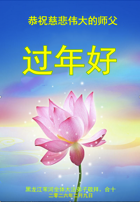 Một đệ tử Đại Pháp ở Tuy Hóa, tỉnh Hắc Long Giang cùng toàn thể người thân trong gia đình cung chúc Sư tôn từ bi vĩ đại năm mới vui vẻ!