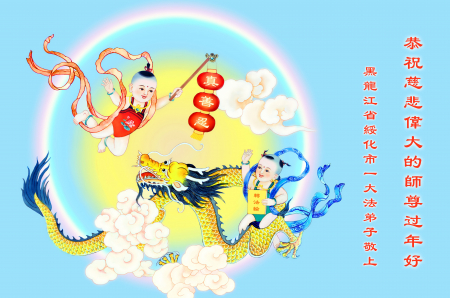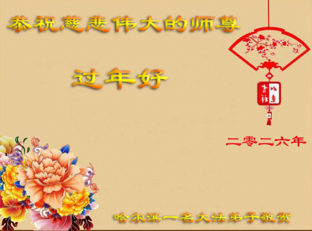 Một đệ tử Đại Pháp ở Cáp Nhĩ Tân cung chúc Sư tôn từ bi vĩ đại năm mới vui vẻ!