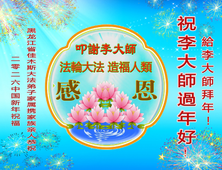 Đệ tử Đại Pháp ở Giai Mộc Tư, tỉnh Hắc Long Giang cùng người nhà kính chúc Sư phụ năm mới vui vẻ!