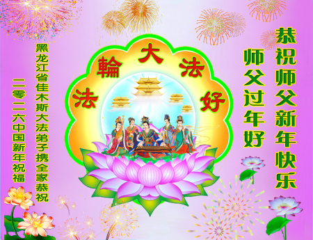 Đệ tử Đại Pháp ở nhóm học Pháp nhỏ hai người ở Giai Mộc Tư, tỉnh Hắc Long Giang cùng toàn thể người thân trong gia tộc cung chúc Sư phụ năm mới vui vẻ!