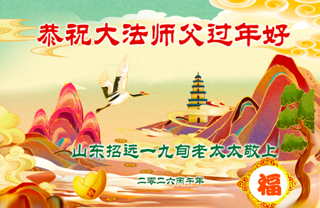Một đệ tử Đại Pháp tại thành phố Chiêu Viễn, Sơn Đông gửi lời chúc mừng năm mới đến Sư phụ! Kính chúc Sư phụ năm mới vui vẻ!