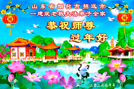 Một đệ tử Đại Pháp là chủ thầu xây dựng tại thành phố Chiêu Viễn, thành phố Yên Đài, tỉnh Sơn Đông cùng toàn thể gia đình gửi lời chúc mừng năm mới đến Sư phụ!