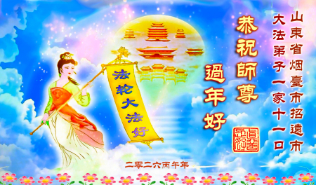 Một đệ tử Đại Pháp tại Chiêu Viễn, Yên Đài, Sơn Đông kính gửi lời chúc mừng năm mới đến Sư phụ từ bi vĩ đại!