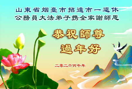 Một đệ tử Đại Pháp là công chức về hưu tại thành phố Chiêu Viễn, thành phố Yên Đài, tỉnh Sơn Đông kính chúc Sư tôn năm mới vui vẻ!