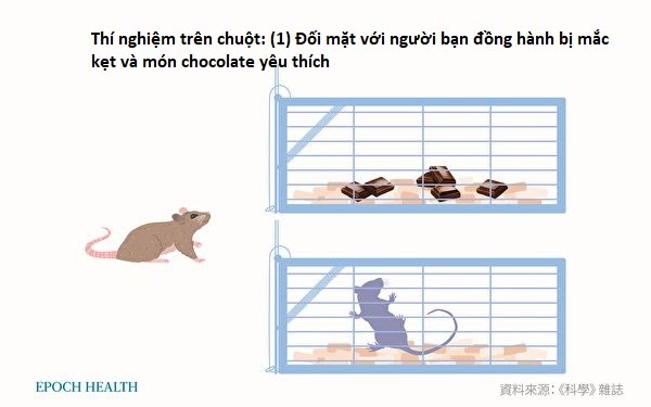 Ngoài ra, những con chuột có thể ăn ít nhất 7 miếng chocolate thay vì các loại thực phẩm thông thường khác, miễn là không có tình huống đặc biệt nào khác xảy ra. Những nhân viên thí nghiệm đã đặt con chuột B tự do trước hai chiếc lồng, một chiếc lồng chứa con chuột A bị nhốt, chiếc lồng thứ hai đặt chocolate mà những con chuột thích ăn. Một bên là sự cám dỗ của món ăn ngon, một bên là người bạn đồng hành đang gặp nạn, quý vị đoán xem chú chuột B này sẽ làm gì?