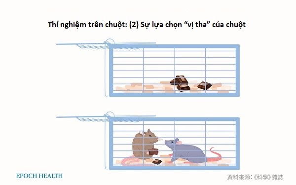 Vào năm 2011, tạp chí Science đã công bố một nghiên cứu thú vị về động vật. Những người làm thí nghiệm đã đặt một con chuột A vào lồng sắt, và quan sát hành vi của một con chuột B đang di chuyển tự do bên ngoài. Thí nghiệm này đã kiểm tra lặp lại hành vi của 30 con chuột B trong tình huống trên. Người ta thấy rằng tần suất hoạt động xung quanh lồng của những con chuột B tăng lên đáng kể, chúng đã tìm mọi cách để mở lồng cho đến khi giải cứu thành công con chuột A [160].