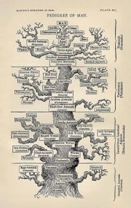 Cây tiến hóa hệ thống nhân loại do ông Haeckel vẽ vào năm 1866. (Cây sự sống mà Haeckel nhìn thấy trong Sự tiến hóa của loài người. Tác giả Ernst Haeckel – Phiên bản đầu tiên từ en.wikipedia. Các phiên bản sau bắt nguồn từ bản quét này, từ Bảo tàng Hiệp hội Triết học Hoa Kỳ). (Ảnh: Tài sản công)