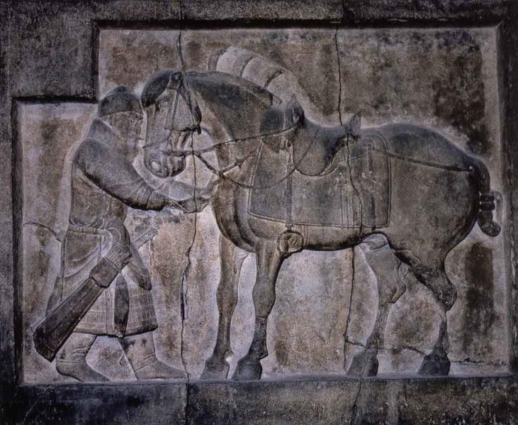 Phù điêu “Táp lộ tử” trong 6 con ngựa tại Chiêu Lăng, bên trái là Khâu Hành Cung đang nhổ mũi tên cho ngựa, hiện lưu trữ tại Bảo tàng Khảo cổ học và Nhân chủng học, Đại học Pennsylvania. (Ảnh thuộc sở hữu cộng đồng)