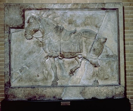 Phù điêu “Quyền mao qua” trong 6 con ngựa tại Chiêu Lăng, hiện lưu giữ tại Bảo tàng Khảo cổ học và Nhân chủng học, Đại học Pennsylvania. (Ảnh thuộc sở hữu cộng đồng)