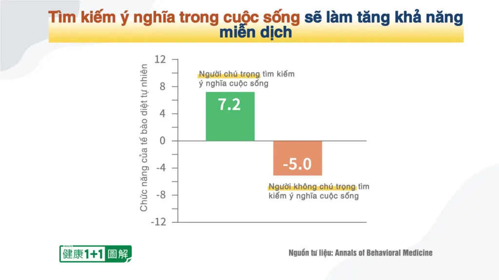 Mọi người thường nghe nói căng thẳng sẽ ảnh hưởng đến sức khỏe, nhưng họ thường không nhận ra rằng suy nghĩ, tính cách và giá trị đạo đức cũng có thể ảnh hưởng đến sức khỏe con người. Một trạng thái tinh thần hướng thượng, đặc biệt là những giá trị đạo đức tốt đẹp, sẽ có thể cải thiện sức khỏe. Nếu một người có thể có tâm thái thiện lương, trung thực và khoan dung thì khả năng miễn dịch của cơ thể sẽ được tăng cường, sức khỏe của cơ thể cũng được thúc đẩy. Nếu bạn có thể thường xuyên cân nhắc về ý nghĩa thực sự của nhân sinh và thiết lập các mục tiêu sống tích cực phù hợp với các giá trị truyền thống, bạn sẽ có thể tăng cường khả năng miễn dịch, giảm tỷ lệ mắc và tử vong do các bệnh tim mạch, có trợ giúp cho việc kéo dài tuổi thọ.