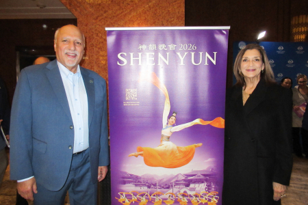 Tối ngày 05/03/2026, Phó Thống đốc bang Nevada, ông Stavros Anthony cùng vợ đã thưởng thức buổi diễn đầu tiên của Đoàn Nghệ thuật Shen Yun Bắc Mỹ tại Trung tâm Nghệ thuật Biểu diễn Smith (The Smith Center for the Performing Arts). (Ảnh: Khương Ly/The Epoch Times)