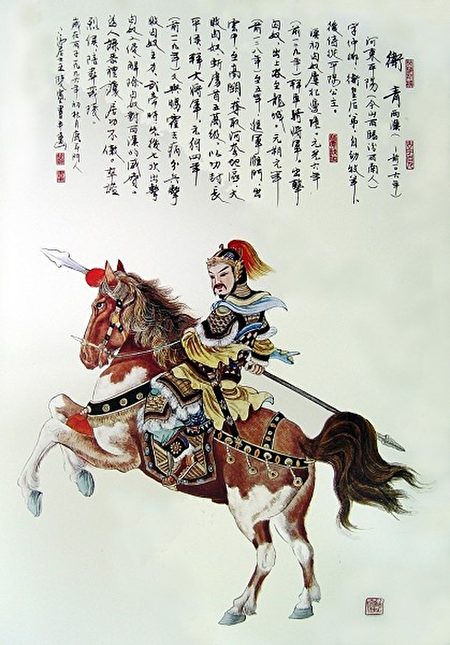 Tranh vẽ Vệ Thanh trong “Bảng một trăm vị anh hùng” của Vương Song Khoan. (Vương Song Khoan cung cấp).